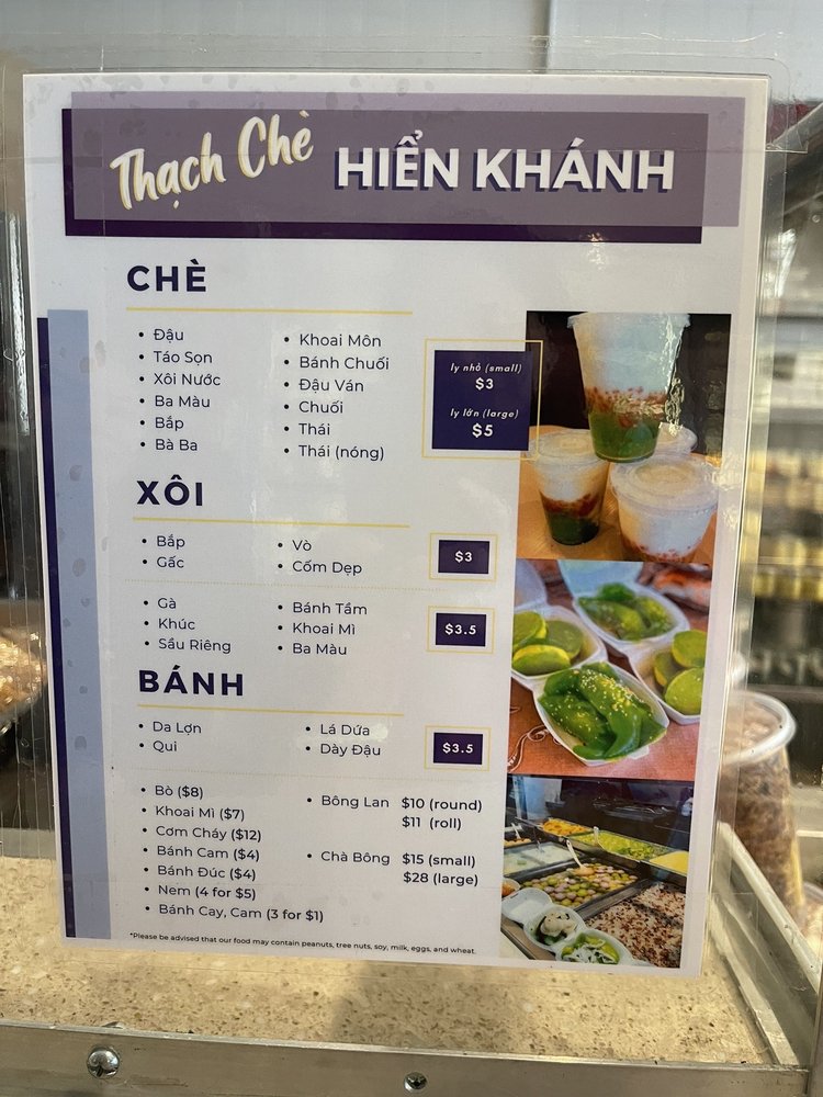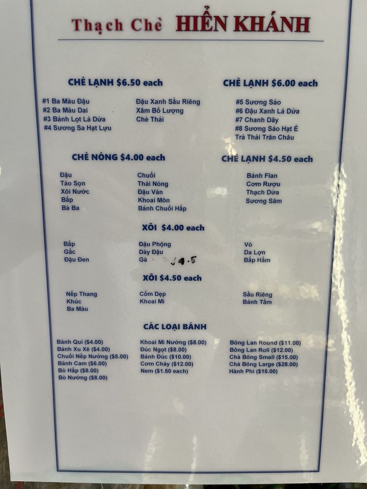 Thach Che Hien Khanh is a Vietnamese dessert haven located in Westminster, California. This casual eatery offers a variety of vegan options and is perfect for those with a sweet tooth. The menu includes traditional Vietnamese desserts such as Che and Thach, all made with high-quality ingredients. The restaurant caters to all kinds of preferences, from good for kids to good for working individuals, making it a versatile dining spot. With amenities like TV, outdoor seating, and Wi-Fi, Thach Che Hien Khanh is an excellent choice for groups or those looking to unwind with a delicious dessert. Don't miss out on this hidden gem and satisfy your cravings at Thach Che Hien Khanh.